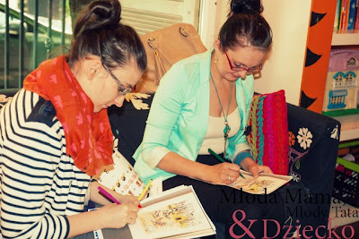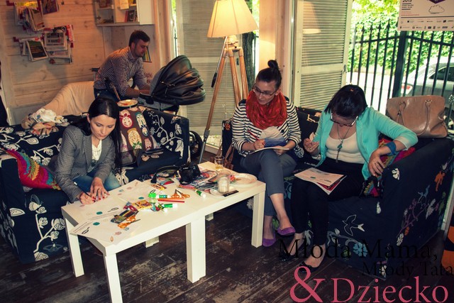 Całe spotkanie to nie sucha prelekcja – to mnóstwo aktywnych ćwiczeń, którymi Pani Ewa rzuca jak drukarka laserowa drukowane strony i nawet my dorośli odkrywamy w sobie niepoznane do dziś pokłady innego myślenia. Więc jaki efekt przyniesie takie działanie z naszymi maluchami, które są dopiero skorupką nasiąkającą? Ogromnie ważne w zabawie z dzieckiem okazuje się to, by każda aktywność niosła ze sobą emocję. Bo wiecie – można pokolorować obrazek, można dorysować nos, można rozwiązać krzyżówkę. Ale jak inne będzie to wszystko kiedy będzie to NASZE? Pokolorować na obrazku samochód taty – przed chwilą sfotografowany, dorysować długie blond włosy mamie na wydrukowanym zdjęciu, rozwiązać rebus, który samemu przed chwilą się stworzyło z wycinków z gazet…