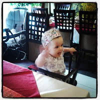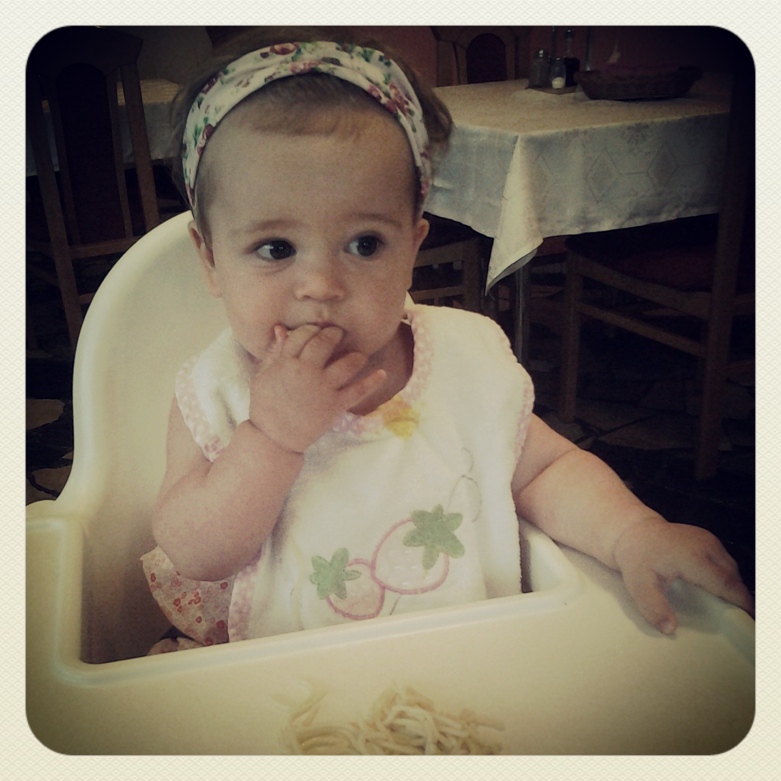 Od czasu do czasu odwiedzamy z Gabi różne jadłodajnie. Na szczęście coraz częściej na pytanie o krzesełko do karmienia dla dziecka kelnerka nie odpowiada „Niestety, nie mamy” a raczej „Oczywiście, gdzie postawić?”. Tutaj Brysia, która również poza domem ćwiczy BLW.