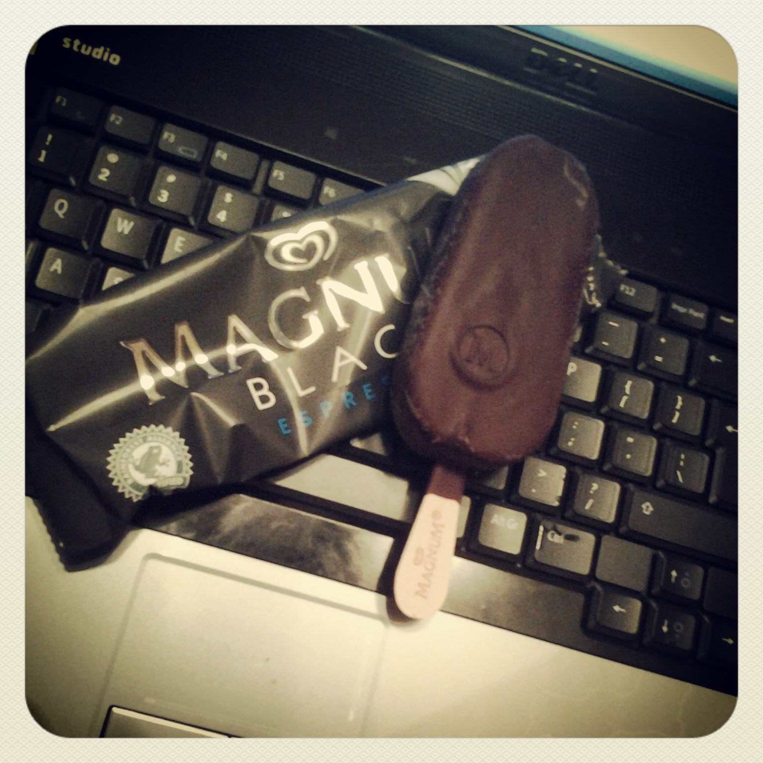 Nie to, co lody! Magnum to jeden z moich ulubionych lodów. Niżej widzicie smak na ten sezon letni Magnum Black Espresso w czarnej czekoladzie. Śmietanka z kawą jest nawet fajnym połączeniem, ale moje serce zdobył parę lat temu Almond oraz Gold i tak też zostało do dziś.