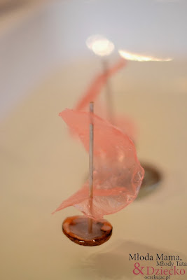 A ja – ku swej uciesze i radości córki – wykonałem ciuchcię z pudełek po zapałkach i flotyllę, na którą składają się dwie poważne łodzie żaglowe z łupinek orzechów włoskich. Tak oto Tata Akrobata obudził w sobie na nowo małego majsterkowicza – trochę pobrudziłem się farbą w sprayu, trochę zachlapałem stół w kuchni woskiem, trochę pociąłem sobie palec, nabiegałem się z kuchni do kotłowni po narzędzia, ale kiedy puściłem łódki w umywalce ucieszyłem się jak sześciolatek! Pływają, a jak się dmuchnie to łapią wiatr w żagle! Tyle wygrać!