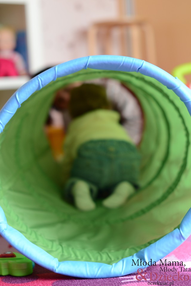 Muszę kiedyś wejść w ten tunel! Może na drugim końcu jest Narnia! 🙂 Póki co jego podwoje zwiedza Gabriela – chyba kolejny must-have kilkulatka – kto nie robił baz, nie chował się pod łóżkiem, kołdrą – a taki tunel to w ogóle frajda.