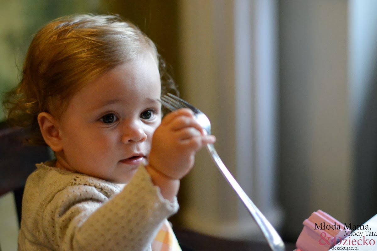 - jeść samodzielnie coś łyżeczką lub widelcem,