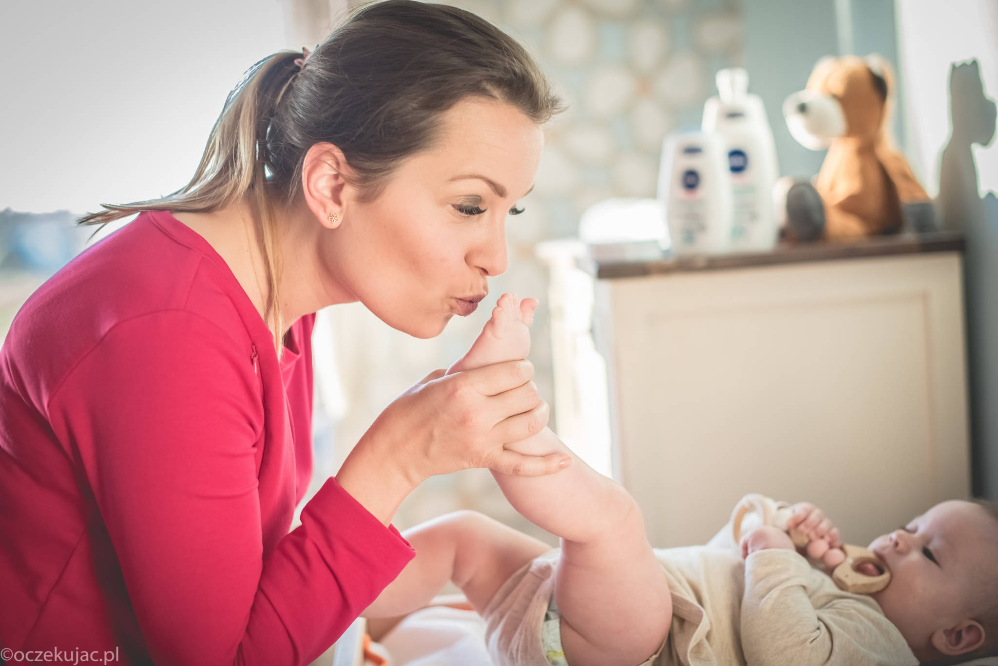 Doświadczenie uczy, że każda podjęta decyzja jest lepsza niż ta nie podjęta. I tak, jak na Gabi testowałam różne rzeczy, tak przy Miszel wprowadzamy sprawdzone rozwiązania. Dzięki wiedzy, którą zdobyłam w ciągu 4 lat wiem, w jaki sposób mogę zapewnić dziecku najpiękniejsze doznania. W czasie pierwszej ciąży spotkałam się ze stwierdzeniami, że lepiej nie stosować emolientów dla dziecka. I przez długi czas ich nie stosowałam przy codziennej pielęgnacji Gabi. Teraz naprawiam swój błąd i przy Miszel jest zupełnie inaczej od pierwszych jej dni. Emolienty NIVEA są z nami od dawna i korzysta z nich cała rodzina – są przeznaczone dla skóry suchej i wrażliwej, są hipoalergiczne, nie zawierają barwników, alkoholu i parabenów, a do tego mają pozytywną opinię Instytutu Matki i Dziecka. Emolienty nawilżają i natłuszczają delikatną skórę.