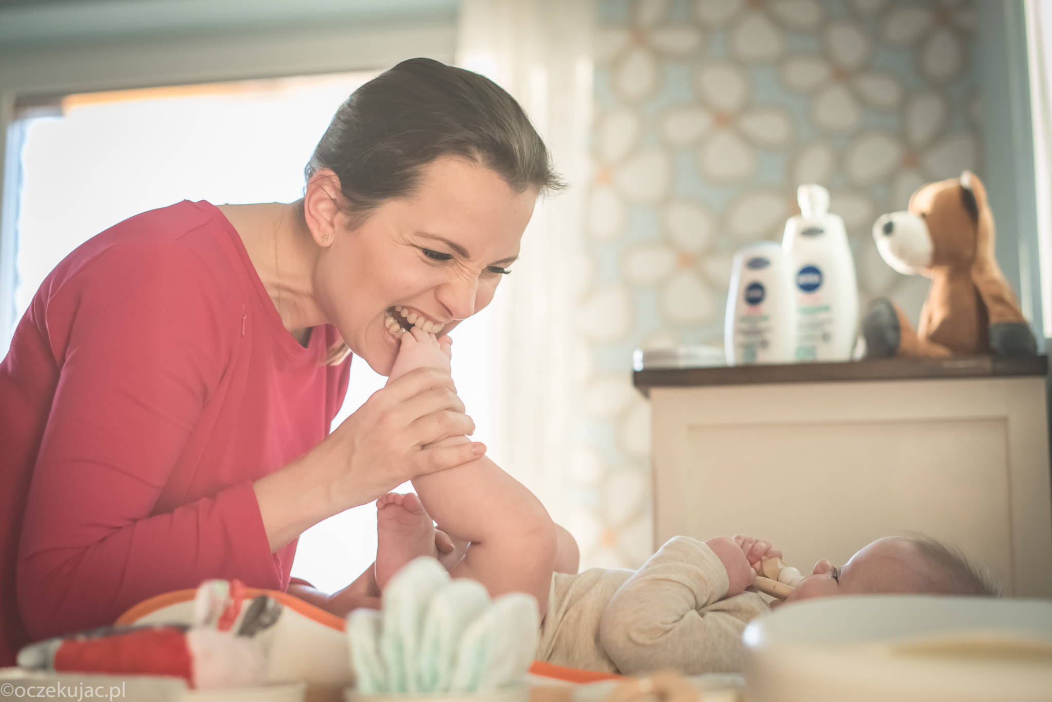 Przytulanie jest bardzo ważne, ale „do tanga trzeba dwojga”. Kto ma w domu przedszkolaka albo starsze dziecko wie, co mam na myśli. Gabi już od dawna jest dziewczynką, która ma własne zdanie i są dni, kiedy jest super przytulaśna i dni, kiedy zwyczajnie nie ma na to ochoty – a ja to szanuję, nic na siłę. Natomiast z Miszel robimy sobie przytulanki milion razy dziennie. Nawet w czasie zmiany pieluszki mogę przytulić, pocałować, pogłaskać, a Mała nie odpowie „No przestań już, mamo!”. Przytulanie niemowlaka nie ma ograniczeń! A ja chcę czuć zapach skóry, czuć dotyk, widzieć ten cudowny uśmiech, gdy jestem obok!