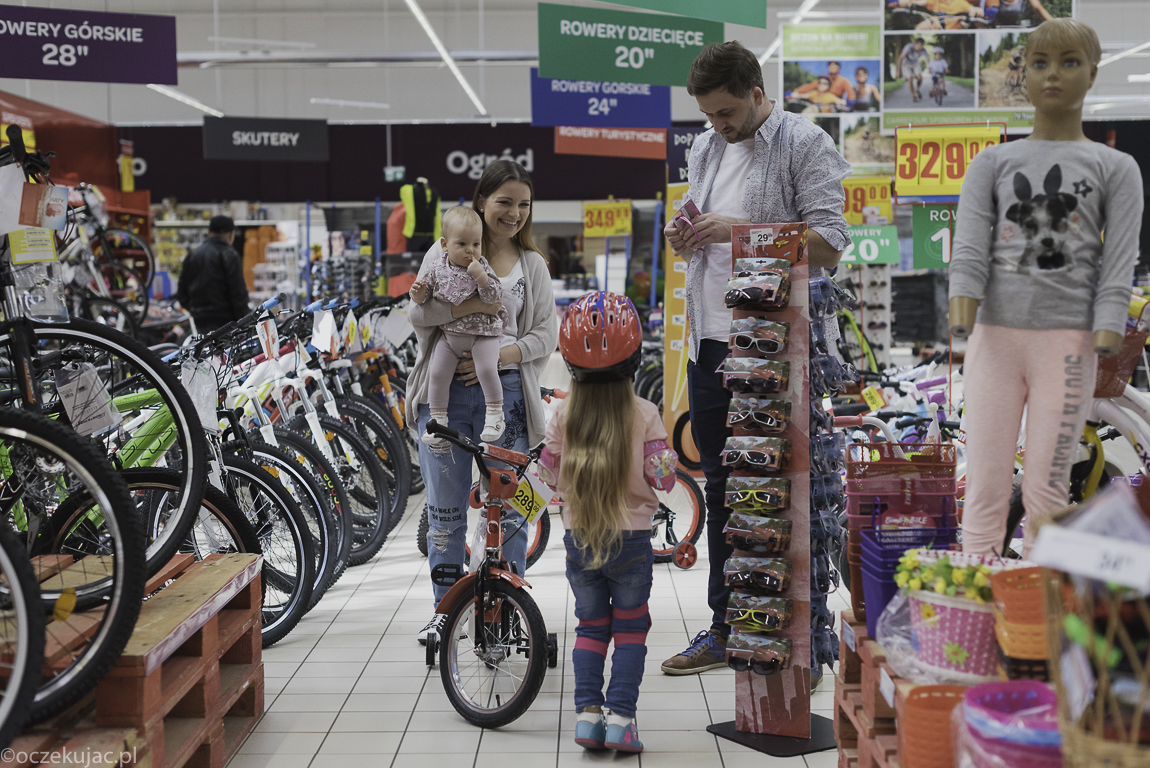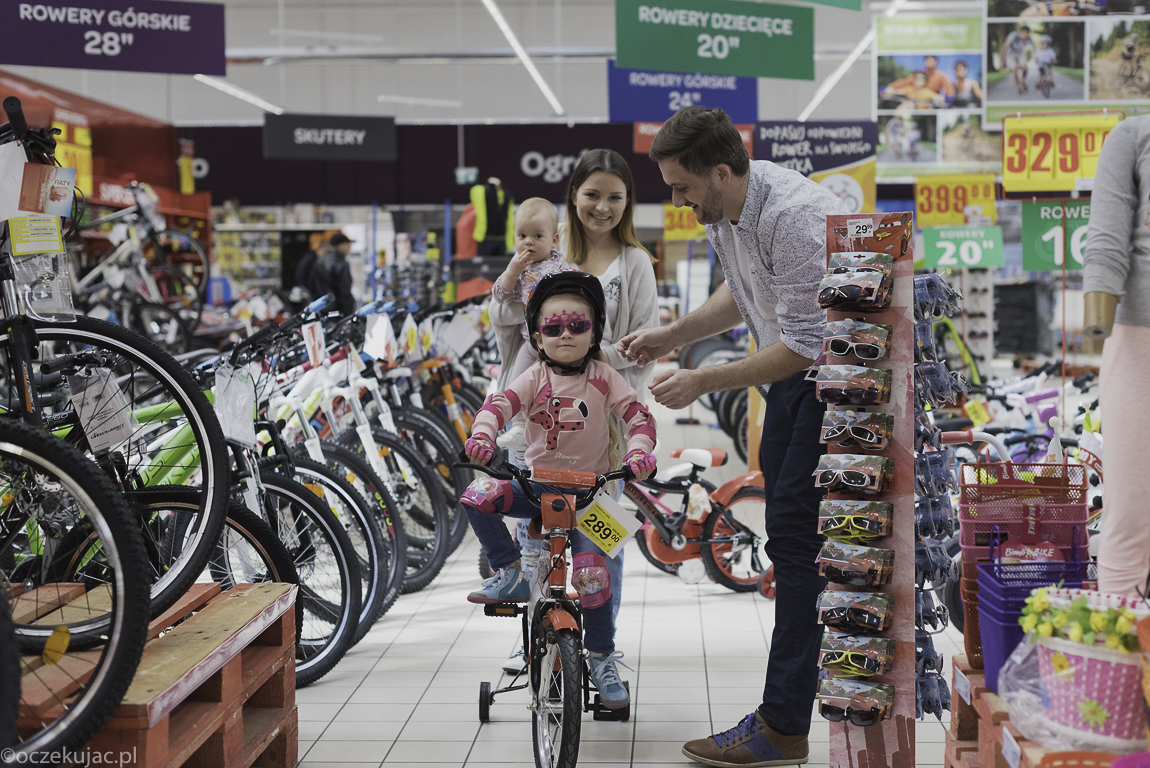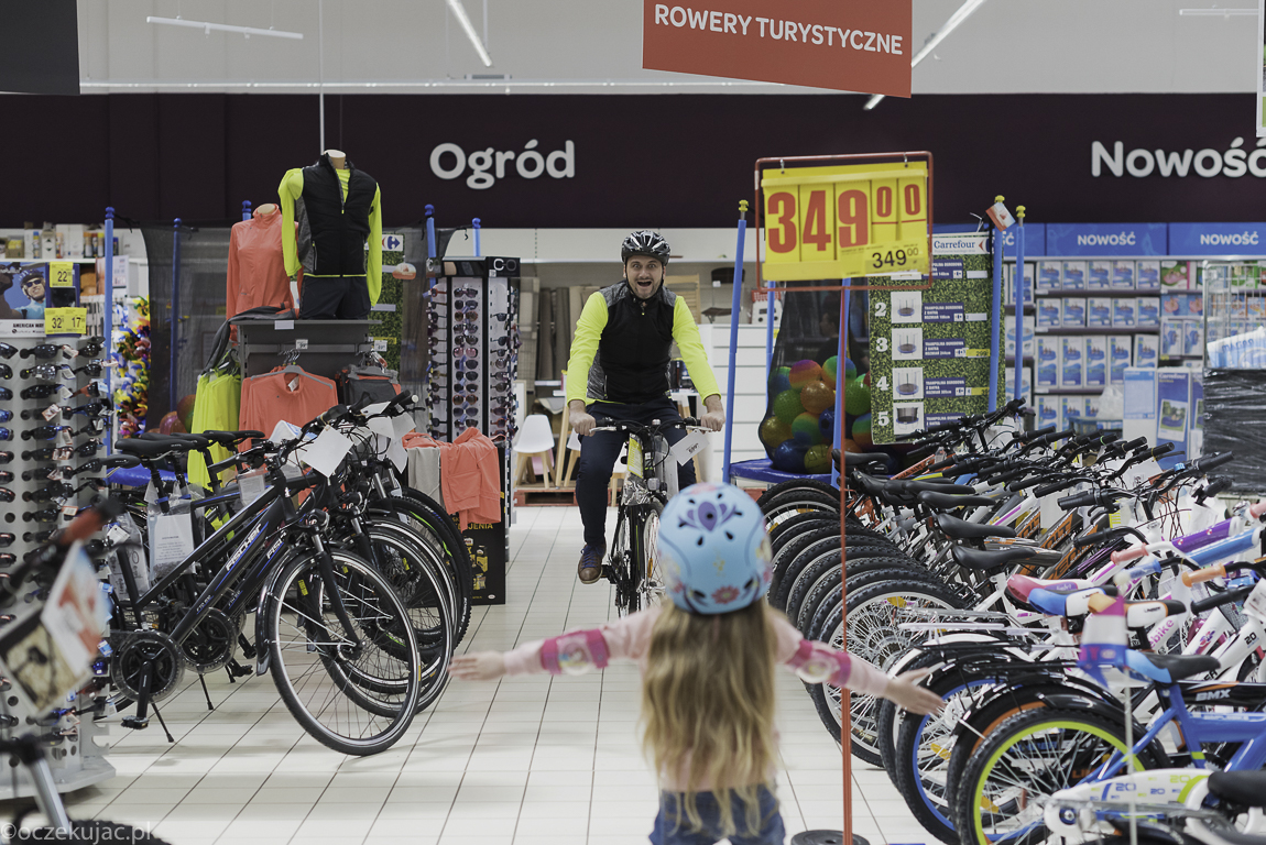 Dokładnie wtedy, gdy zacząłem myśleć o tym, że Gabrieli trzeba sprawić nowy rower na ten rok, do zgłębienia oferty rowerów i akcesoriów rowerowych zaprosił nas do siebie Carrefour. I w ostatni weekend wybraliśmy się do jednego z hipermarketów tej sieci na wielkie rowerobranie! Bo jak Gabriela ma mieć nowy sprzęt, to dlaczego i nie my? 🙂 No, ale dobra, my przy okazji, bo po prostu okazało się, że oprócz naprawdę dużego wyboru rowerków dziecięcych (od tych najmniejszych trójkołowców po takie już na komunię) w Carrefourze można wybrać również dobry jakościowo i przystępny cenowo sprzęt dla dorosłych.