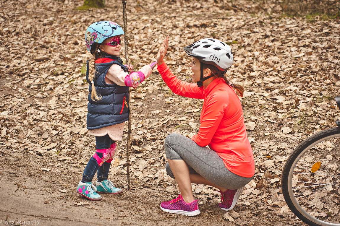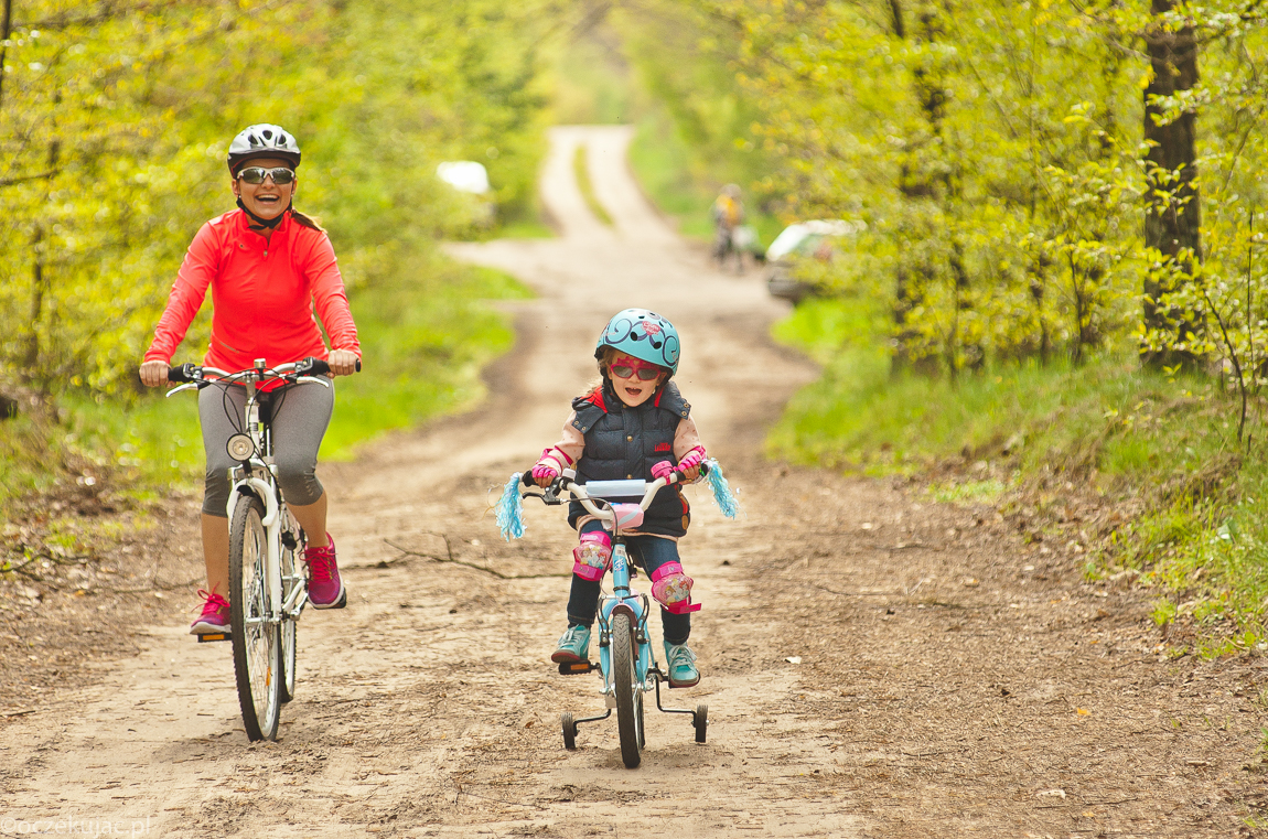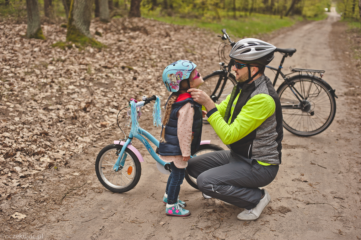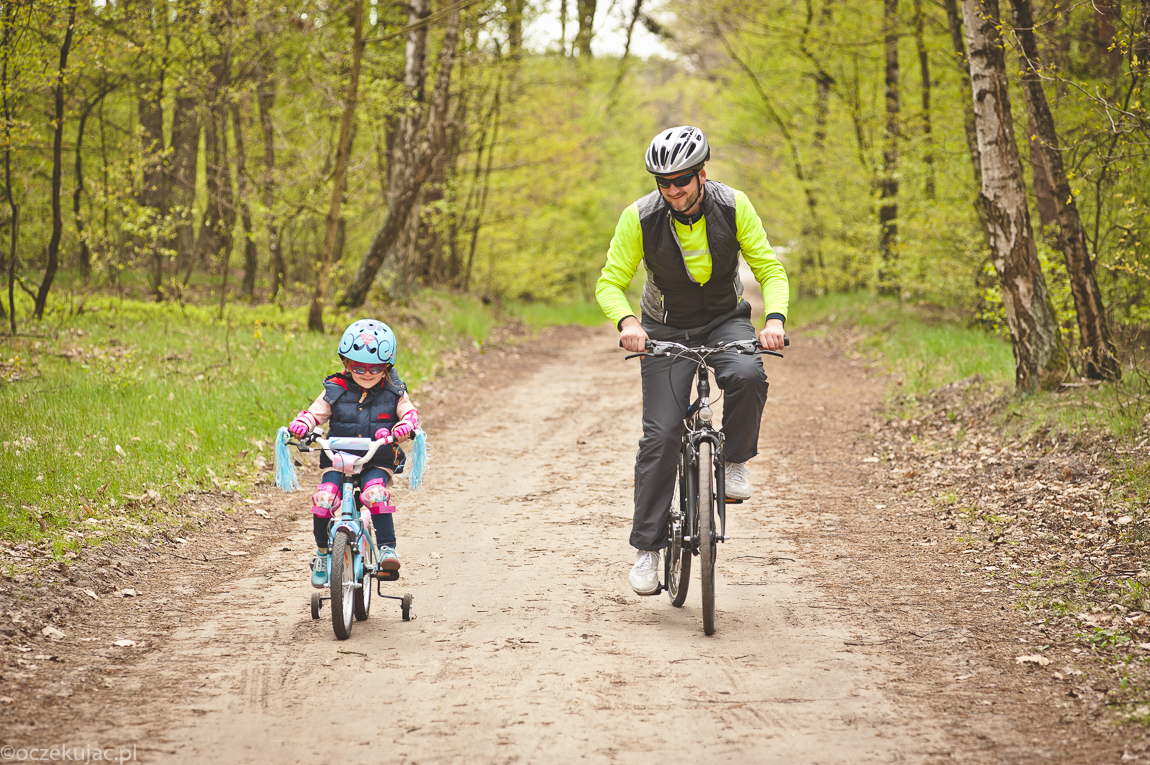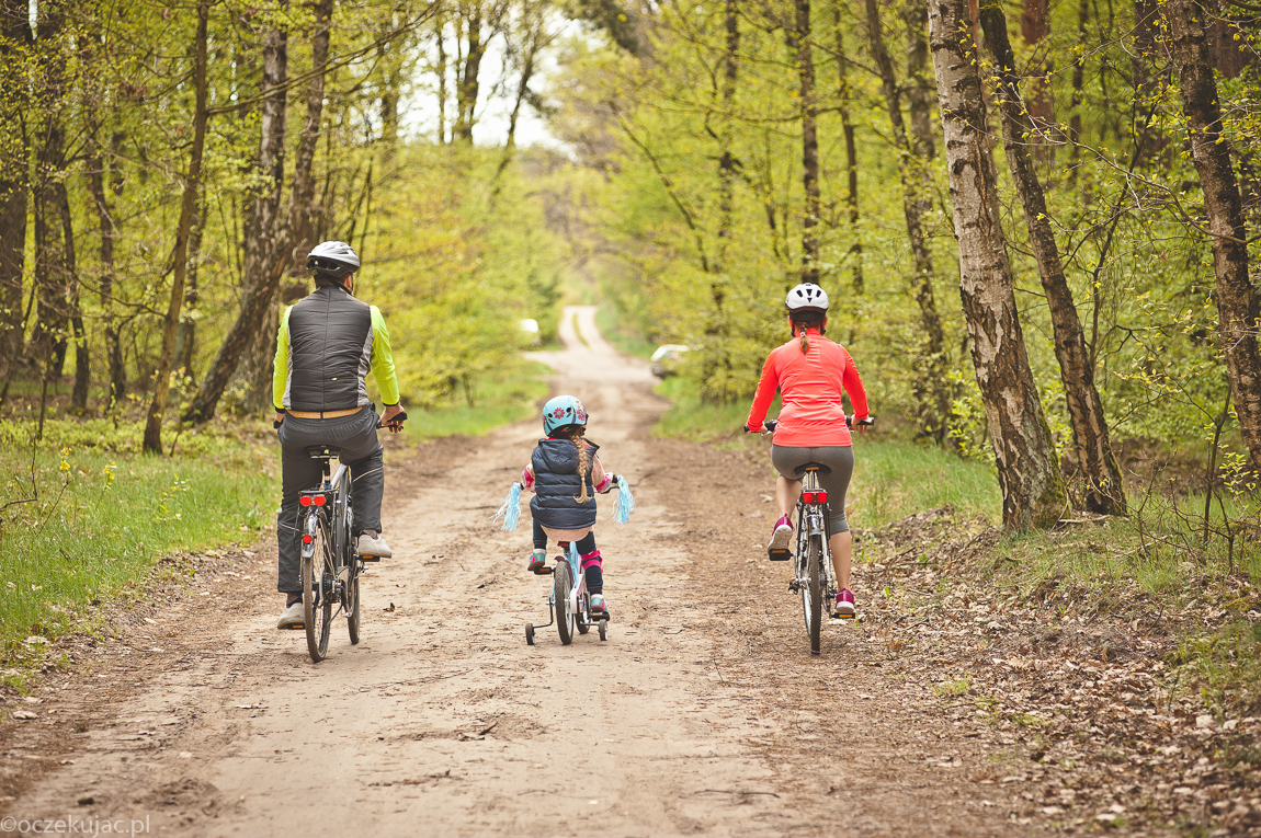 Przed weekendem osobiście udaliśmy się do jednego z hiperów (przeczytasz o tym TUTAJ) i tam zaopatrzyliśmy się we wszystko, co potrzebna na udaną rowerówkę. Potem pozostało już tylko łapać pogodę, a z tym nie było najgorzej. Szczególnie, że Gabi to tak zapalona rowerzystka, że kiedy się uprze, to jeździ nawet w kaloszach i z parasolem nad głową. Na szczęście na nasz rodzinny wypad zamówiono pogodę idealną na leśne szlaki.