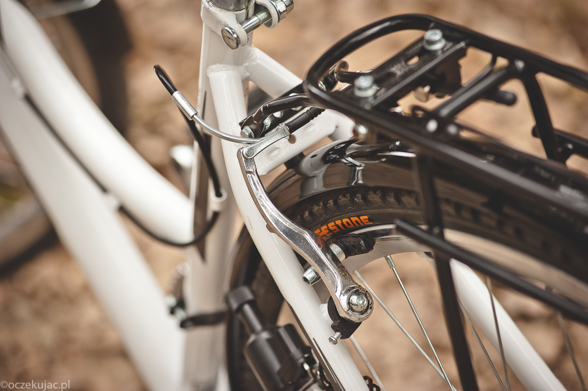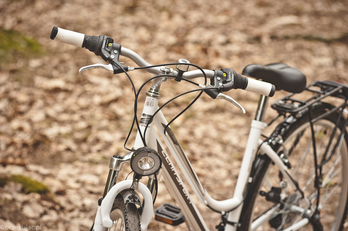 Maria ze swoim wzrostem ciuchy i buty często i z powodzeniem kupuje w działach dziecięcych. Była obawa, że i roweru dla siebie tam będzie szukała, bo poprzednie dwa zawsze były w jakimś miejscu dla niej za duże – a to siodełko za wysoko, a to kierownica za daleko, a to znowu do manetki nie sięgała. A tu niespodzianka, widocznie dekretem Napoleona nakazano w Carrefour wprowadzić do sprzedaży rowery dla osób dorosłych o wzroście takim, a nie innym ;), co w przypadku Cesarza Bonaparte nie byłoby wcale niezrozumiałe… I chwała mu za to w imieniu Marii, bo ona swoją damkę wybrała od razu – jeśli idzie o wizual. Pozostały więc kwestie techniczne – wybrać bagażnik na jakiś ciuch dodatkowy, przerzutki, żeby się nie zmęczyć nadto w piachu leśnym, no i gdy już Michalinę w foteliku będzie wozić, hamulce tarczowe – kto jeździł z takimi, wie jaki to luksus.