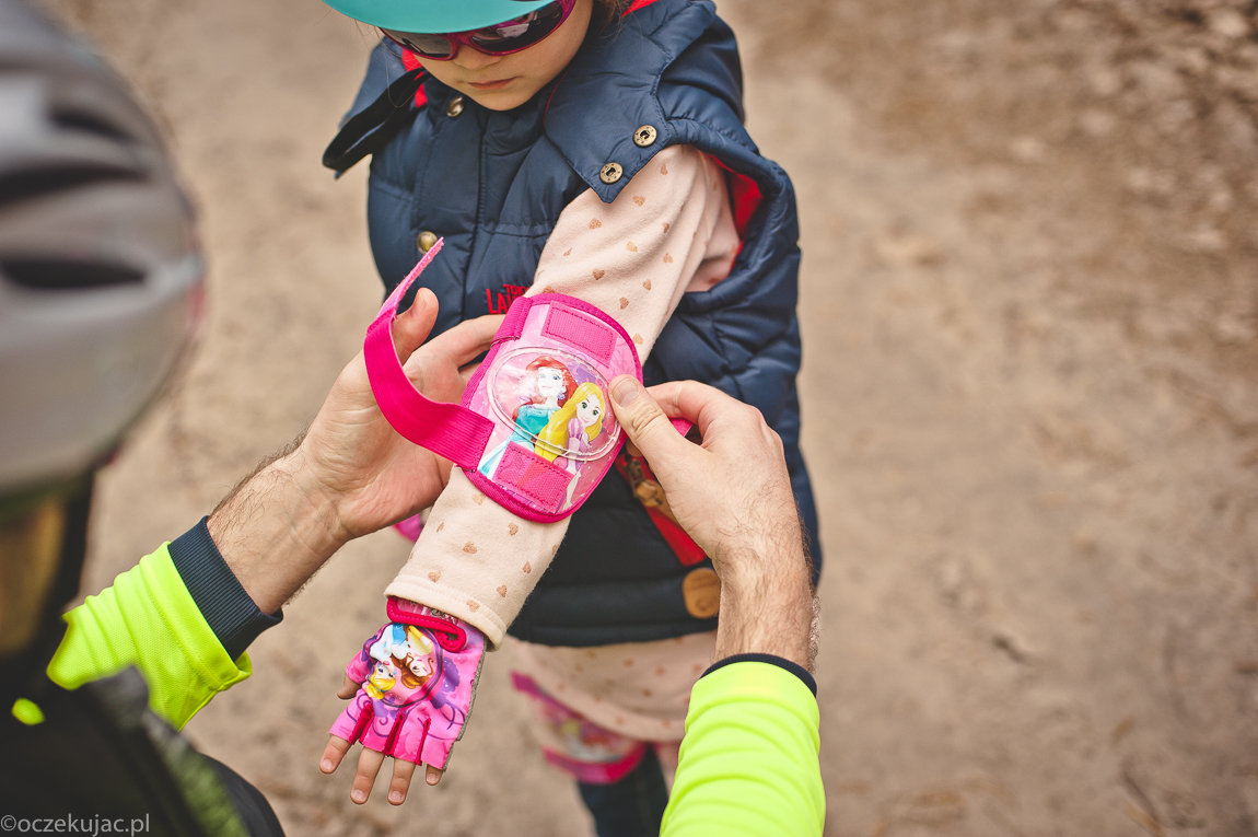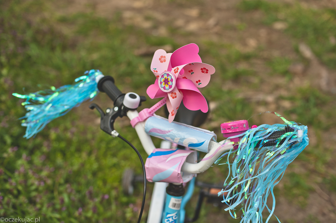 Gabriela oczywiście zauroczona jest w swoim nowym pojeździe – z koszykiem, wiatraczkiem, dodatkowym dzwonkiem (ma dwa, a co!) i koniecznie frędzelkami przy kierownicy. O wszystkich elementach BHP nie pozwala zapomnieć – bez kasku i ochraniaczy nie wsiada na jednoślad. Bo kto by nie chciał, będąc małą pięcioletnią dziewczynką, z dumą jeździć odzianym w pełną reprezentację bohaterek wszelkich bajek – Arielka, Elsa, Bella… No kto by nie chciał? Na ten sezon wybrałem dla Gabi rower na 16 calowych kołach, przesiadła się z 12 calowych i to był doskonały wybór – pasuje idealnie, a do jesieni na pewno jeszcze Gabi się nieco urośnie, więc siodełko i kierownica pójdą w górę. No i kółka boczne znikną niedługo, bo Gabriela na swoim rowerze – i to w pełnej zbroi z ochraniaczy, czuje się naprawdę pewnie i bezpiecznie. Już ostatnio, kiedy po przedszkolu namówiła mnie na spacer z rowerem po lesie i w deszczu, miałem wątpliwości, czy to dobry pomysł, ale ten mały szatan poradzi sobie wszędzie. Co prawda mamy wówczas nieco więcej prania, ale czyż szczęście dziecka nie jest tego warte? 🙂
