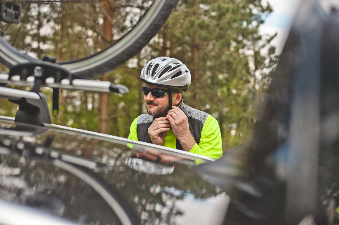Ja myślałem, że mamy w domu ciuchy na rower, ale okazało sie, że nie. To znaczy wraz z nowym rowerem nie dość, że Maria się obkupiła w profesjonalną odzież, to jeszcze mi podziałała na ambicję i też się przyodziałem. Choć początkowo sceptycznie podszedłem do bluzy w kolorze jarzeniowa zieleń, to serdecznie Marii podziękowałem za to, że mnie namówiła, bo jednak komfort w zwykłej bluzie, a takiej pro na rower jest nieporównywalny. Natomiast ja od zawsze nie siadam na rower bez okularów. To najpewniejsza ochrona przed owadami, a do tego na rower koniecznie z polaryzacyjnymi szkłami – fantastycznie odpoczywa wzrok. Żona ma nawet saszetkę rowerową sobie kupiła – śmiałem się, że na błyszczyk… A ostatecznie sam jej ją zarekwirowałem na klucze, więc zwracam honor.