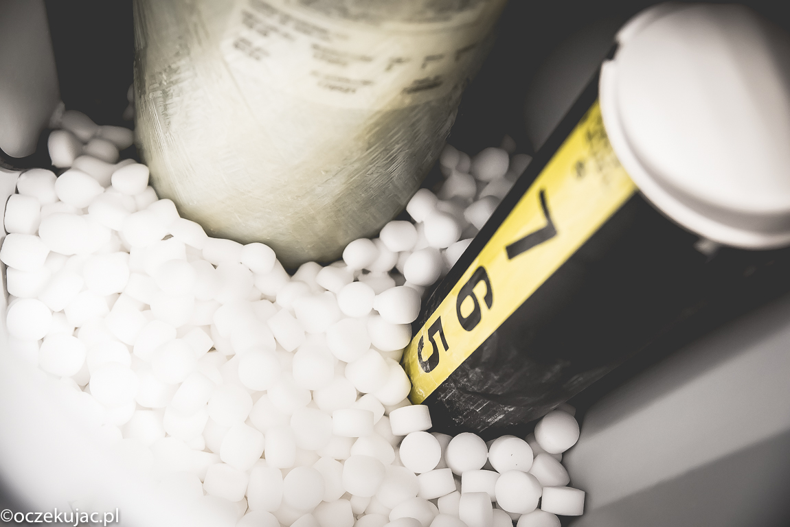 Za zmiękczanie odpowiada wspomniane złoże jonowymienne, ułożone ściśle wewnątrz szczelnej butli zmiękczacza wody. Złoże jest naładowane jonami sodu. Podczas przepływu wody, kationy wapnia i magnezu z wody są zatrzymywane na powierzchni złoża i do Twojego kranu wędruje woda już ich pozbawiona, za to wzbogacona o jony sodu ze złoża. Sód nie zmienia smaku wody, jedynie jej skład chemiczny, na co muszą zwrócić uwagę osoby na diecie niskosodowej.