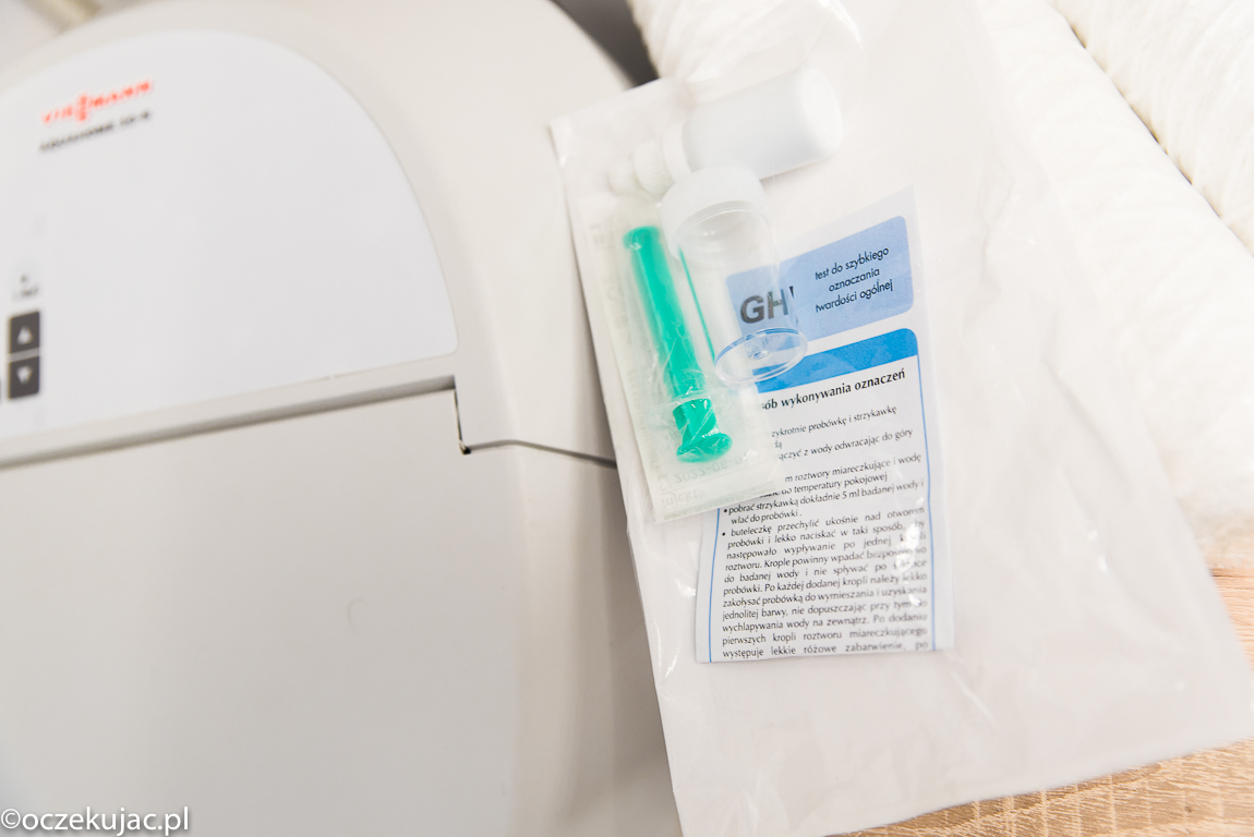 A najlepiej też kup prosty zestaw do zbadania twardości wody – w internecie za 20 zł. Zalecana twardość wody dla naszej instalacji po zastosowaniu zmiękczacza to 6-8°dh i tak mamy ustawiony zestaw urządzeń. Na potrzeby wpisu i z własnej ciekawości zbadałem u nas wodę i wyszło dokładnie 7 stopni niemieckich, czyli idealnie. To działa! 🙂