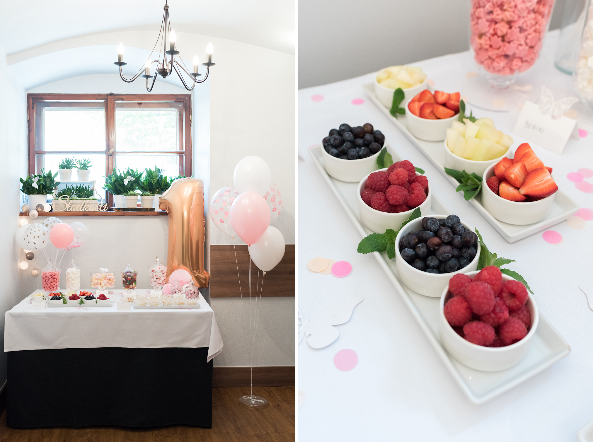 Dodatkowo zamówiłam też inne urodzinowe akcesoria: Girlandę frędzle w kolorze białym, złotym i różowym, Kule honeycomb różnej wielkości w kolorach: biały, jasnoróżowy i amarantowy, Balony przeźroczyste w serca, gwiazdki, kwiatki, kropki – w kolorze różowym i złotym oraz Białe balony i Balony jasnoróżowe w białe kropki – BALONY TUTAJ. Pan Talerzyk jest Mistrzem cudownych gadżetów na wspaniałe uroczystości nie tylko dla dziecka, więc jeśli szukacie inspiracji lub przepięknych dodatków urodzinowych to śmiało skorzystajcie z Pana Talerzyka! A TUTAJ możecie nacieszyć oko!