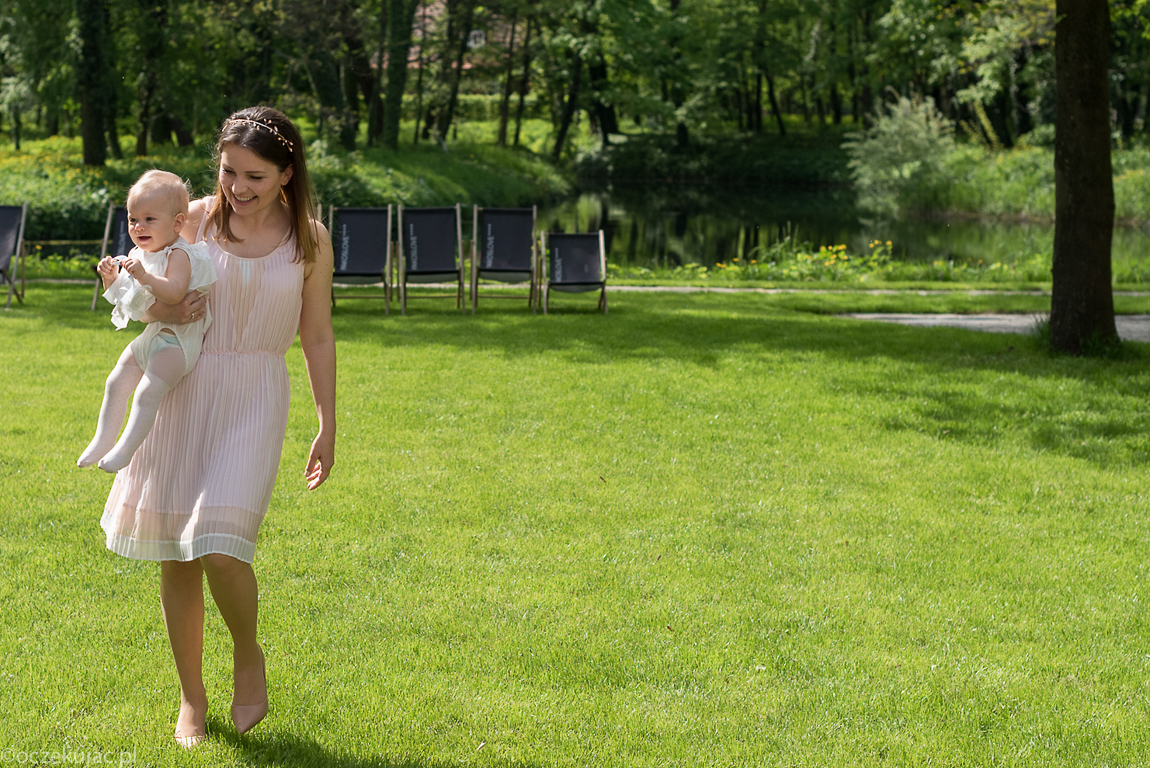 Dobrze wiece, że jeszcze parę dni przed Roczkiem zastanawiałam się, co włożyć i obstawiałam swoją sukienkę ecru, którą miałam w szafie. Ostatecznie zdecydowałam się na jasnoróżową sukienkę, do niej dokupiłam torebkę również w kolorze delikatnego różu. Całość dopełniłam złotą opaską z małymi różowymi listkami. Największą przeprawę miałam z butami. Chciałam kupić klasyczne nude czółenka na szpilce, nie za wysokie, nie za niskie, najchętniej ze skóry lakierowanej. Miałam już nawet takie upatrzone, ale rozmiar 36 był dla mnie za mały, a 37 za duży. Ostatniego dnia, w piątek, znalazłam idealnie pasujące, które nie kosztowały fortuny! W całym zestawieniu czułam się bardzo dobrze, komfortowo i wyjątkowo!