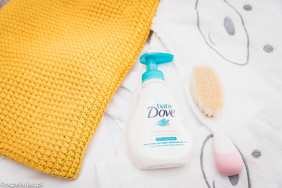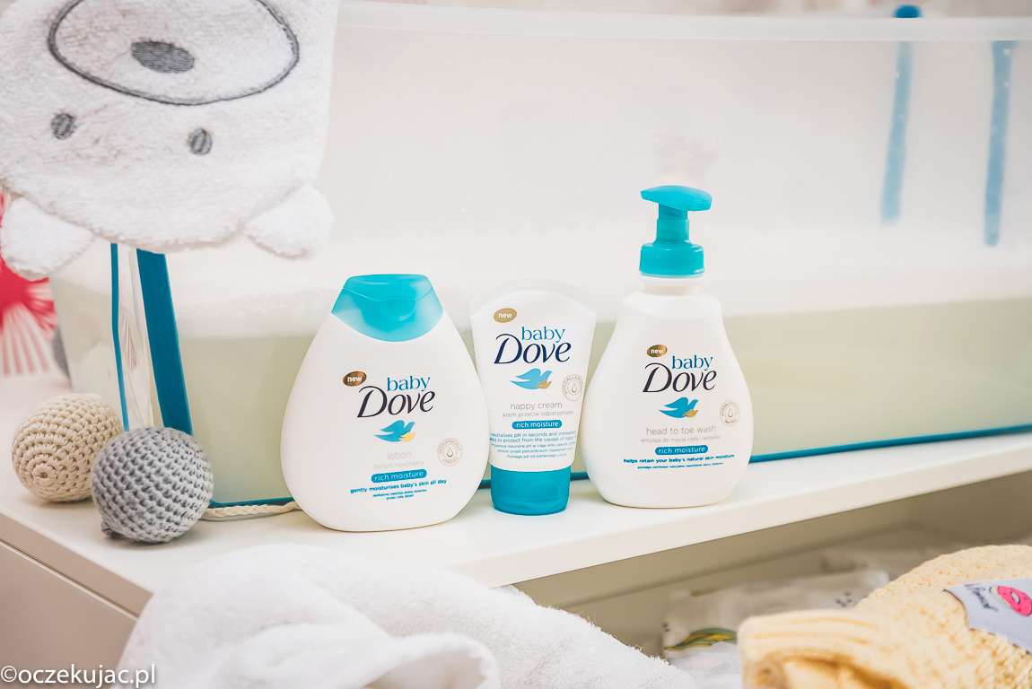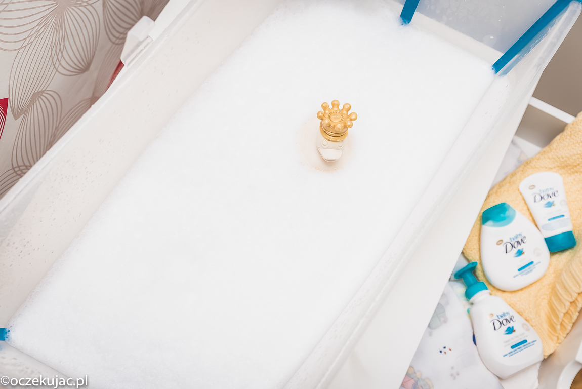 Tu również istnieje wiele teorii. Zaczynając od samego obmywania wodą, po specjalne płyny dla dzieci. W naszym domu ulubionym gościem jest emulsja do mycia ciała i włosów Baby Dove Rich Moisture. Nie musimy sięgać po cały zestaw kosmetyków, ponieważ jest to zarówno płyn do kąpieli, żel pod prysznic, szampon i odżywka w wersji dla dzieci. Głównym zadaniem emulsji do mycia ciała i włosów jest odpowiednia pielęgnacja skóry maluszka. Kąpiemy się codziennie, dlatego też najbardziej zależy nam na nawilżeniu cienkiej i delikatnej skóry, oraz zapobieganie podrażnieniom, które mogą występować podczas nieodpowiedniej pielęgnacji. Pamiętajmy o tym, by wybierać kosmetyki przeznaczone do pielęgnacji skóry maluszków. Sama woda nie wystarczy, aby pozbyć się bakterii, jednak zbyt mocne kosmetyki wyjałowią skórę dziecka i przysporzą nam licznych problemów.