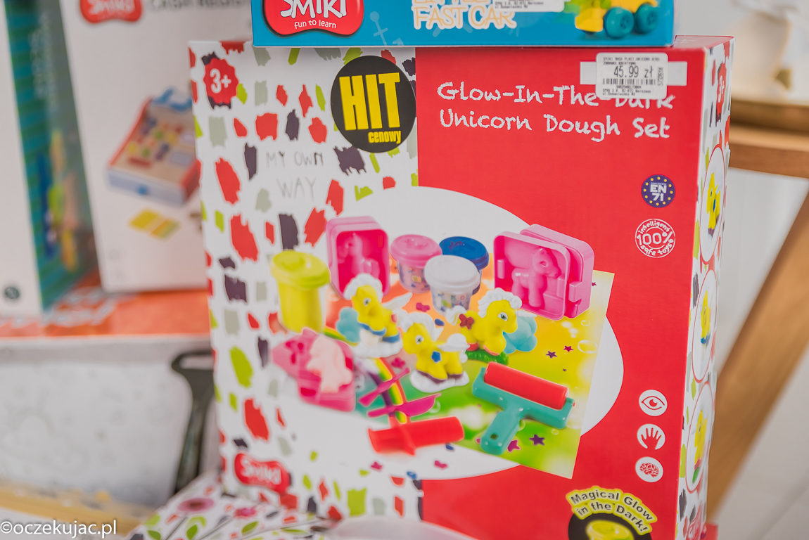 Nasze dzieci generalnie uwielbiają wszystkie masy plastyczne. Ta jednak kompletnie zawładnęła ich sercami – w końcu świeci w ciemności! Aż cztery tuby kolorowej masy (z czego jedna świecąca), a do tego foremki i wałek – i wszystko z motywem koziorożca. Trudno się nie zachwycić, prawda?