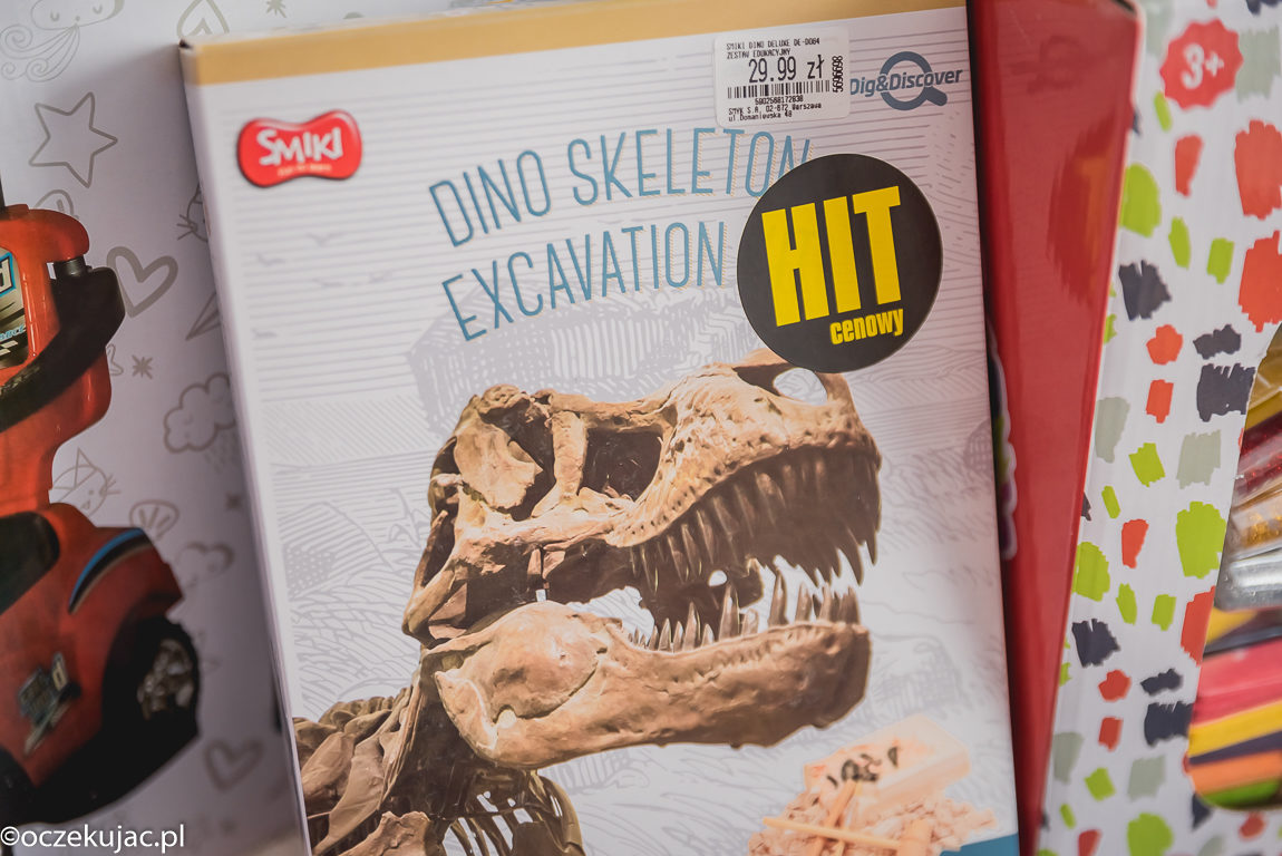 Piasek i trochę tajemnicy – to wystarczy, żeby każde dziecko rzuciło wszystko, czym się zajmuje i pobiegło w stronę tej zabawki. Cała frajda polega na odkopaniu dinozaura (za pomocą narzędzi godnych prawdziwego archeologa) i złożeniu go w całość. Finalnie można zebrać cztery różne dinozaury, więc zabawa może się przedłużyć na kilka tygodni.