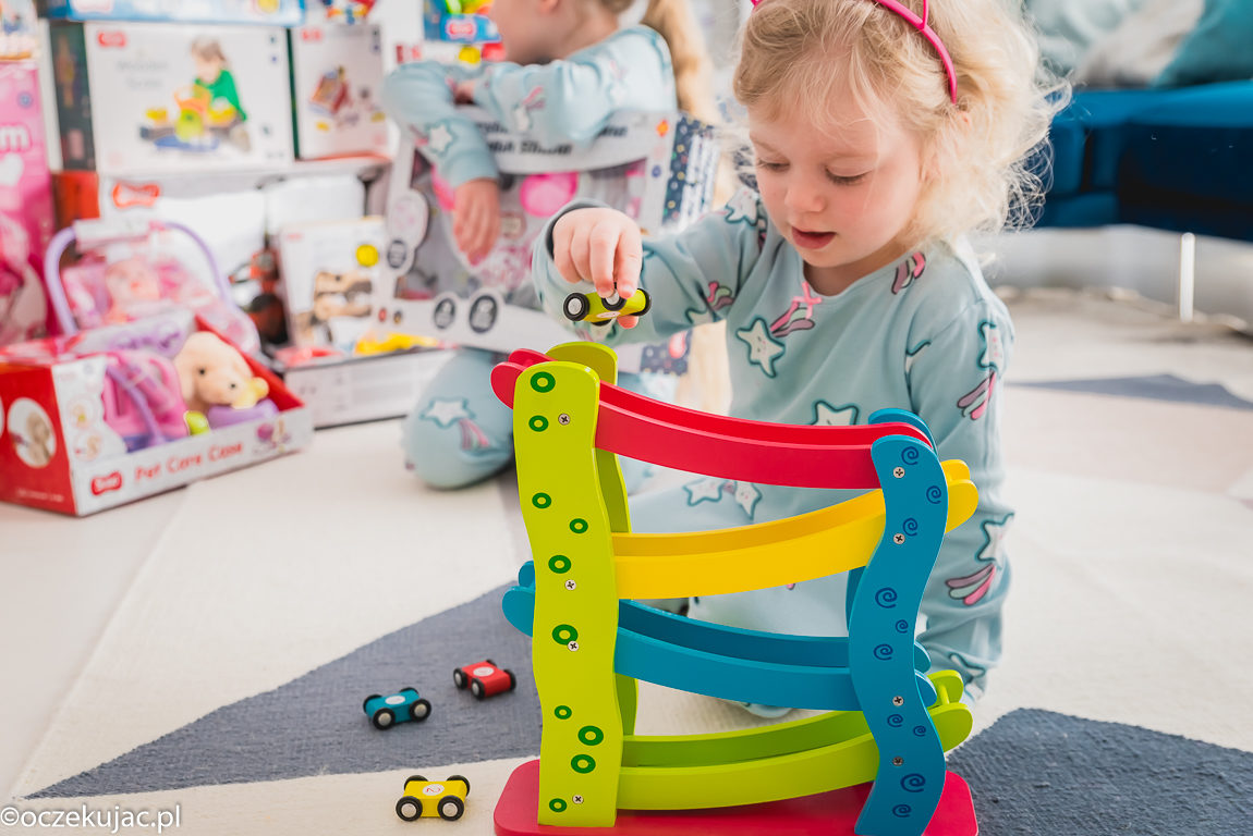Kornel już od jakiegoś czasu wykazuje duże zainteresowanie zabawkami. I jesteśmy pewni, że gdy tylko trochę bardziej zapanuje nad swoimi słodkimi rączkami, na stałe „przykleją” się one właśnie do tego autodromu. Tymczasem niespodziewanie to Miśka zwariowała na punkcie tej zabawki i potrafi ją zająć na dobre pół godziny! Trzy zjeżdżalnie, szybka akcja ? i nasze ulubione, drewniane wykonanie.