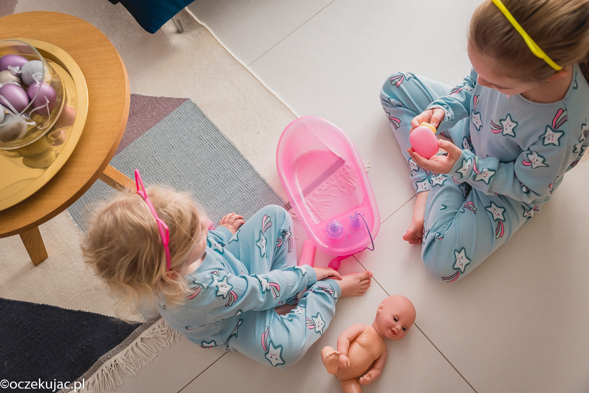 Nie musimy chyba Was przekonywać, że odkąd w naszym domu pojawił się Kornel, w dziewczynkach obudził się instynkt macierzyński. Przejawiają go nie tylko w stronę brata, ale i ukochanych lalek. Dlatego wiedzieliśmy, że ta laleczka w nosidełku będzie hitem – i dokładnie tak się stało. Dziewczyny mają nawet odruch kołysania!